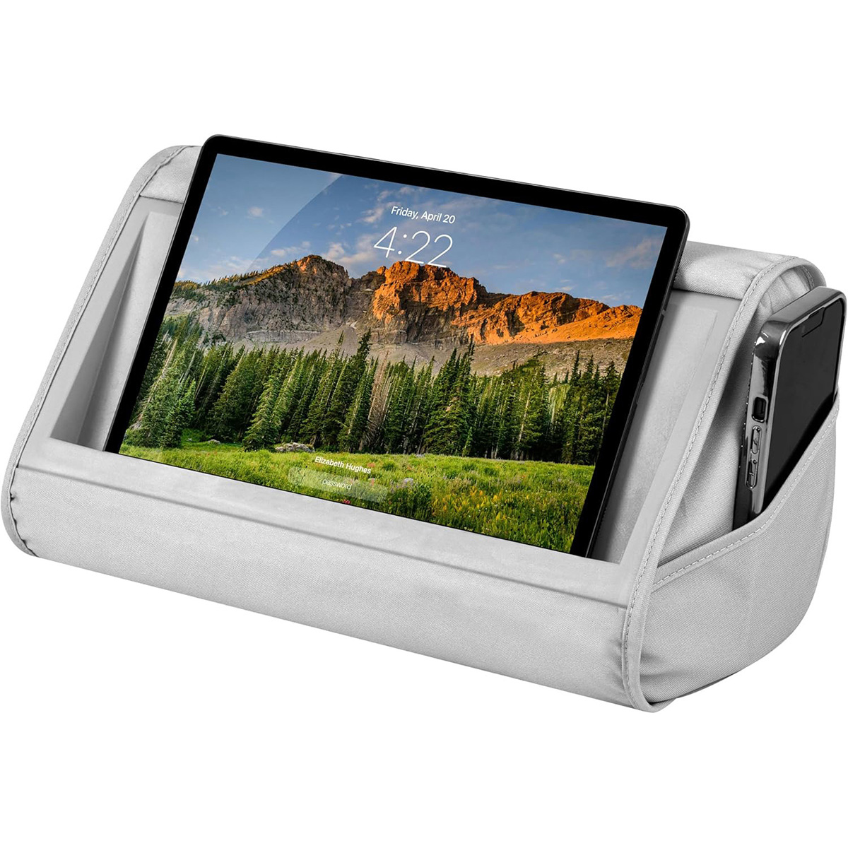 Tablet Pillow Stand – 11" Slot | Cushioned Holder with Storage Pocket & Handle | Gray